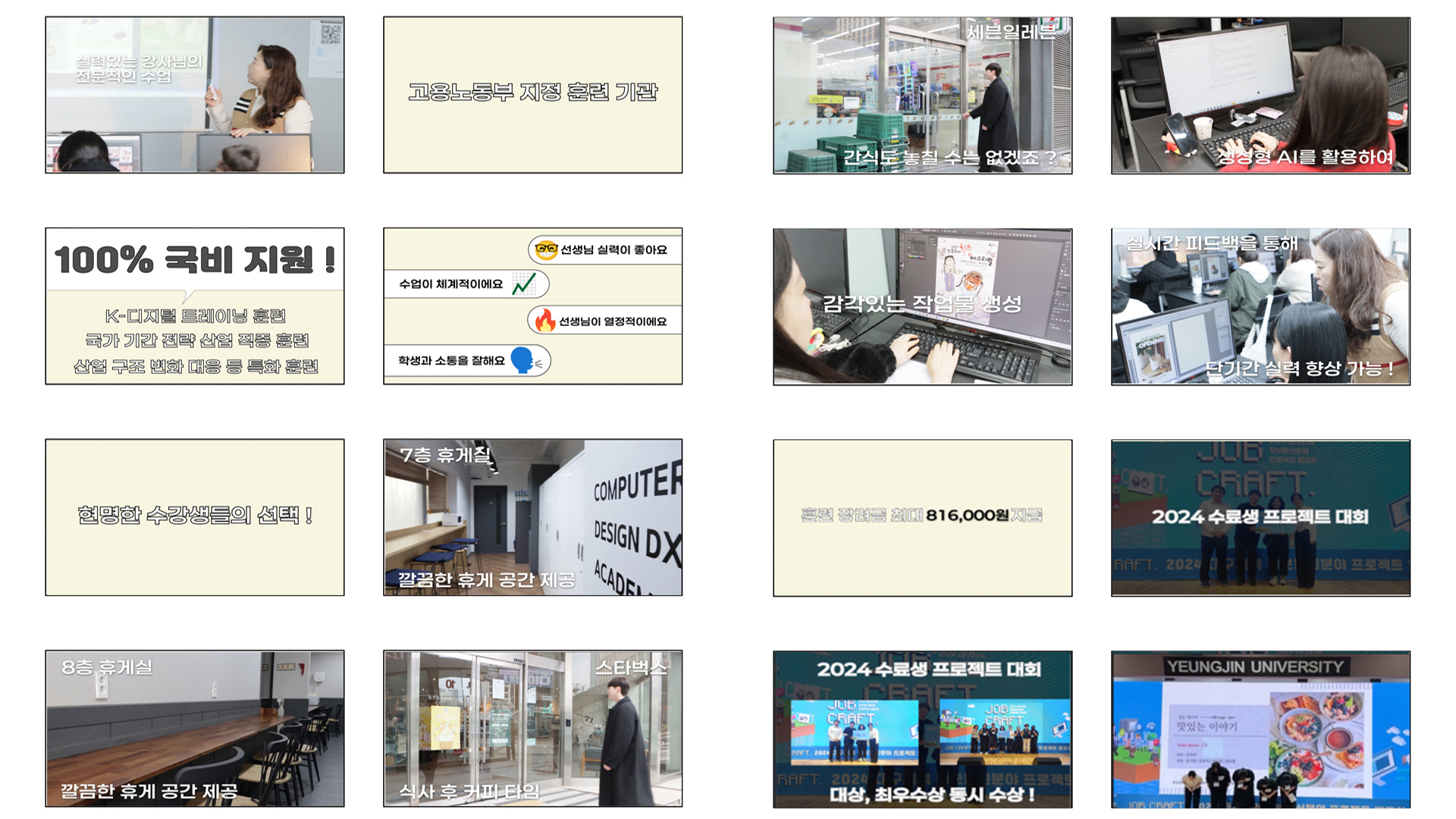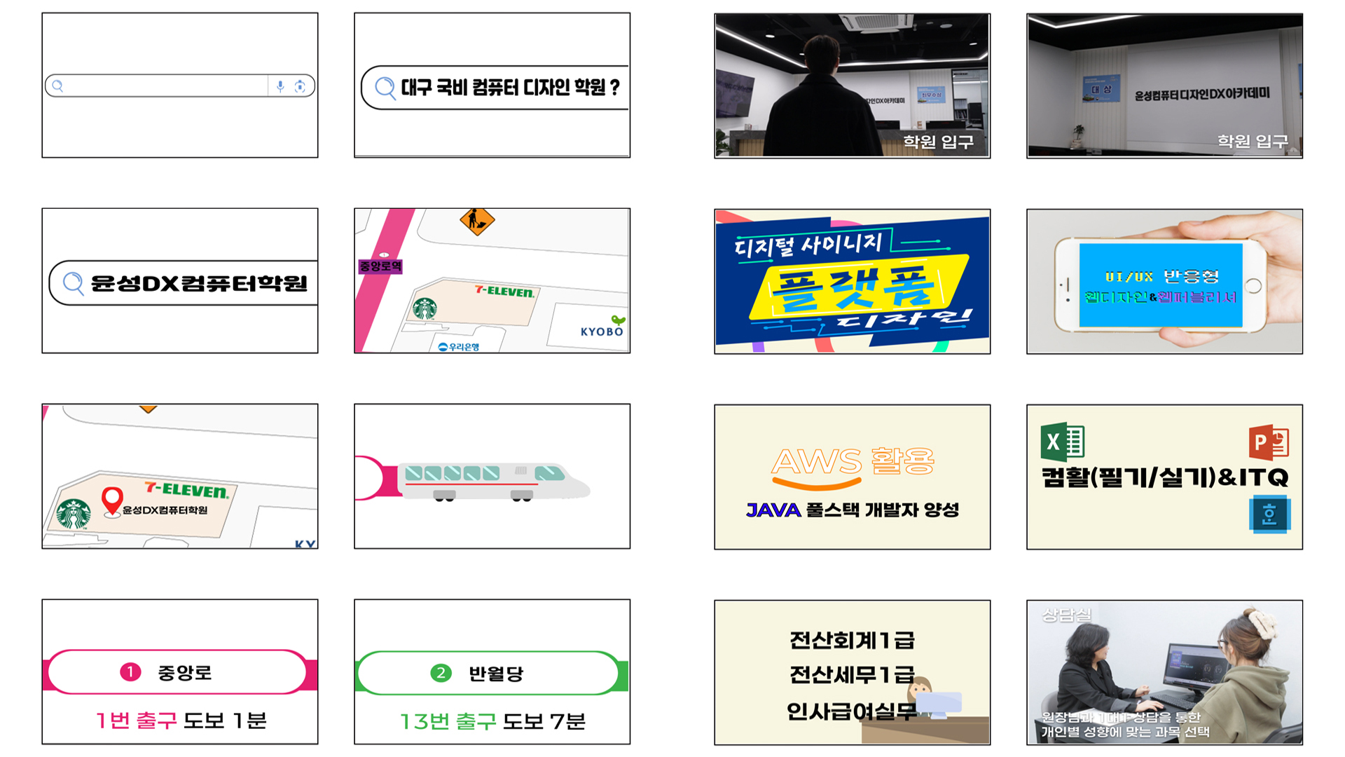윤성DX아카데미학원에서 4개월간 수강을 하면서 윤성DX아카데미에서 많은 사람들이 수강을 하고 디자인과 영상 편집 스킬을 얻어 갔으면 하는 마음이 들었습니다.